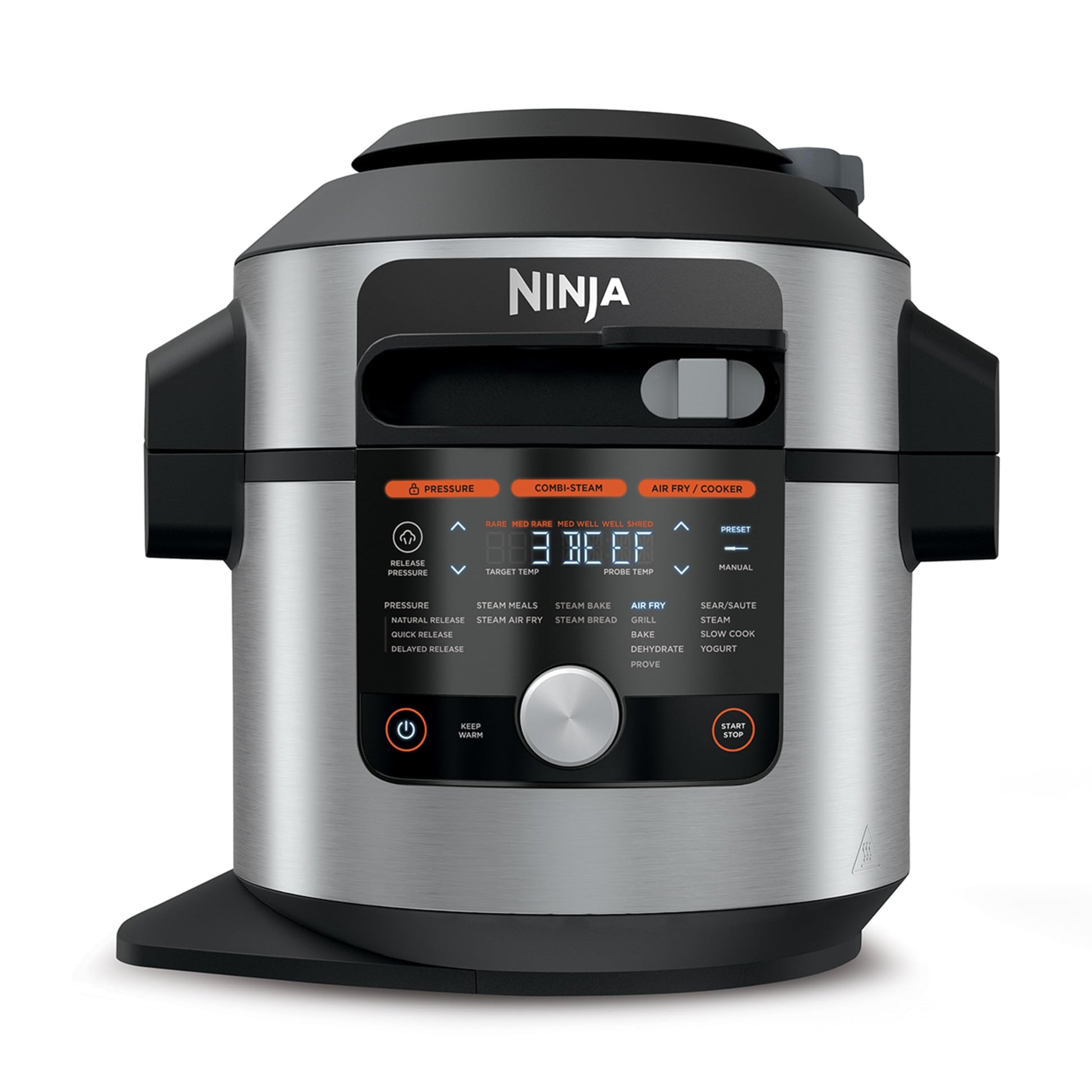 Ninja Foodi MAX Multikocher mit Smart Deckel, 7,5L, 14-in-1 Multicooker, Pressure Cooker Schnellkochtopf, Airfryer Heißluftfritteuse, Slow Cooker, digitaler Temperaturfühler, Edelstahl, OL750EU